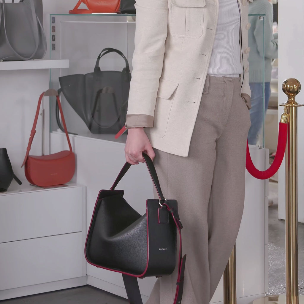 Toujours Maxi Bag, Textured Leather, Black & Red Accents